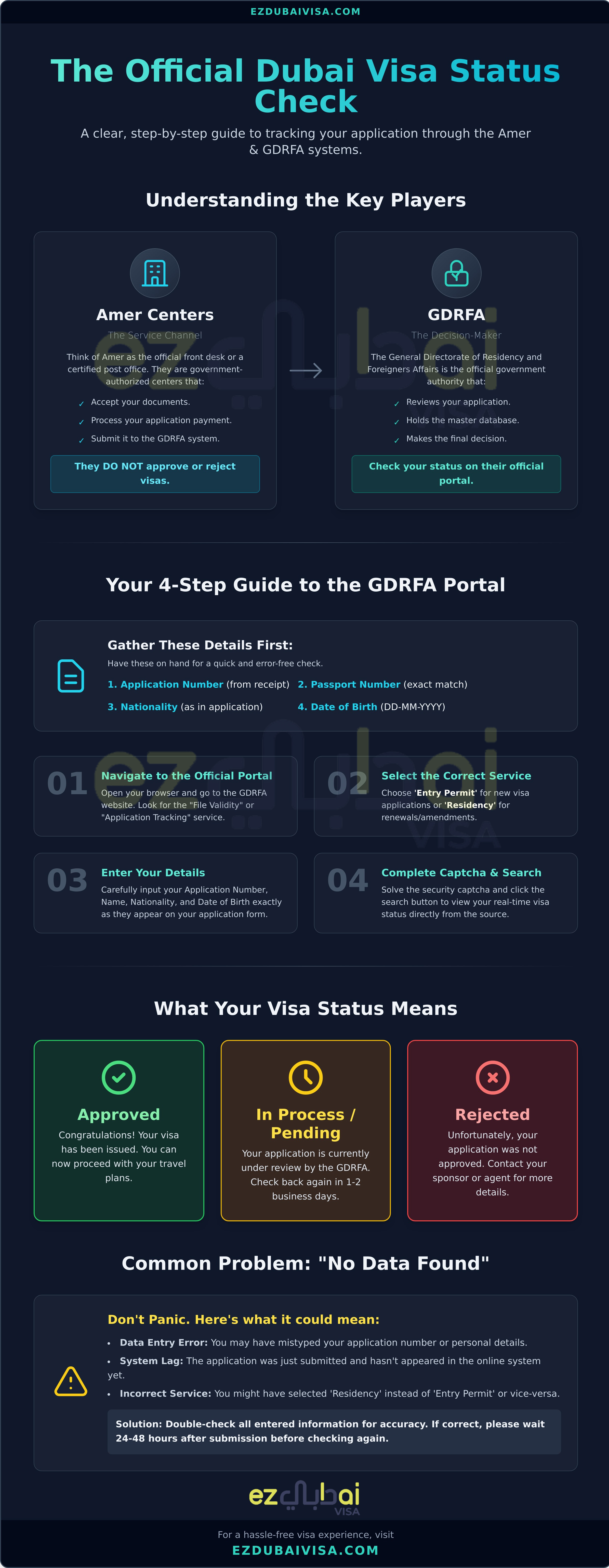 Navigating the Dubai visa application process doesn't have to be complicated. You now know how to use the GDRFA portal for your official amer visa check and what to do if you encounter common issues. While these government tools are available, understanding the various statuses and troubleshooting problems can add unnecessary stress to your travel planning.