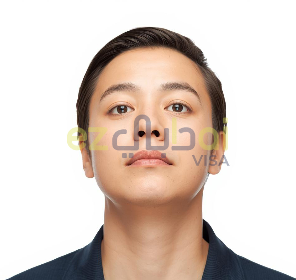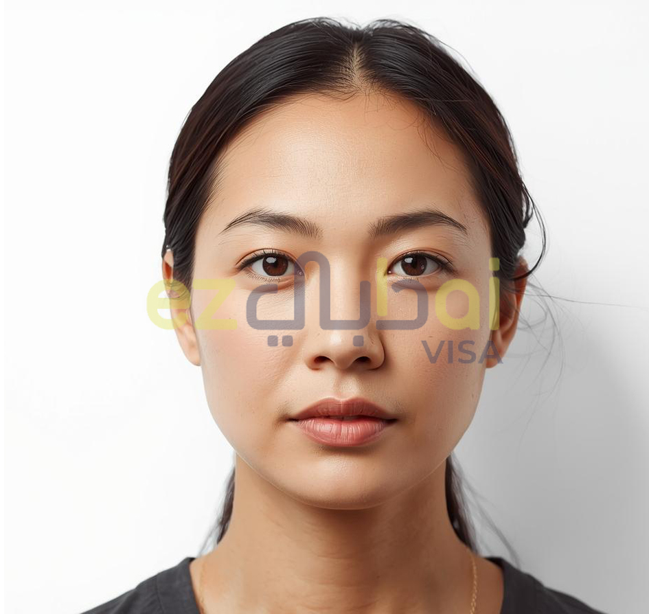Passport photo for UAE visa should clearly display the full face with a neutral expression and eyes open.